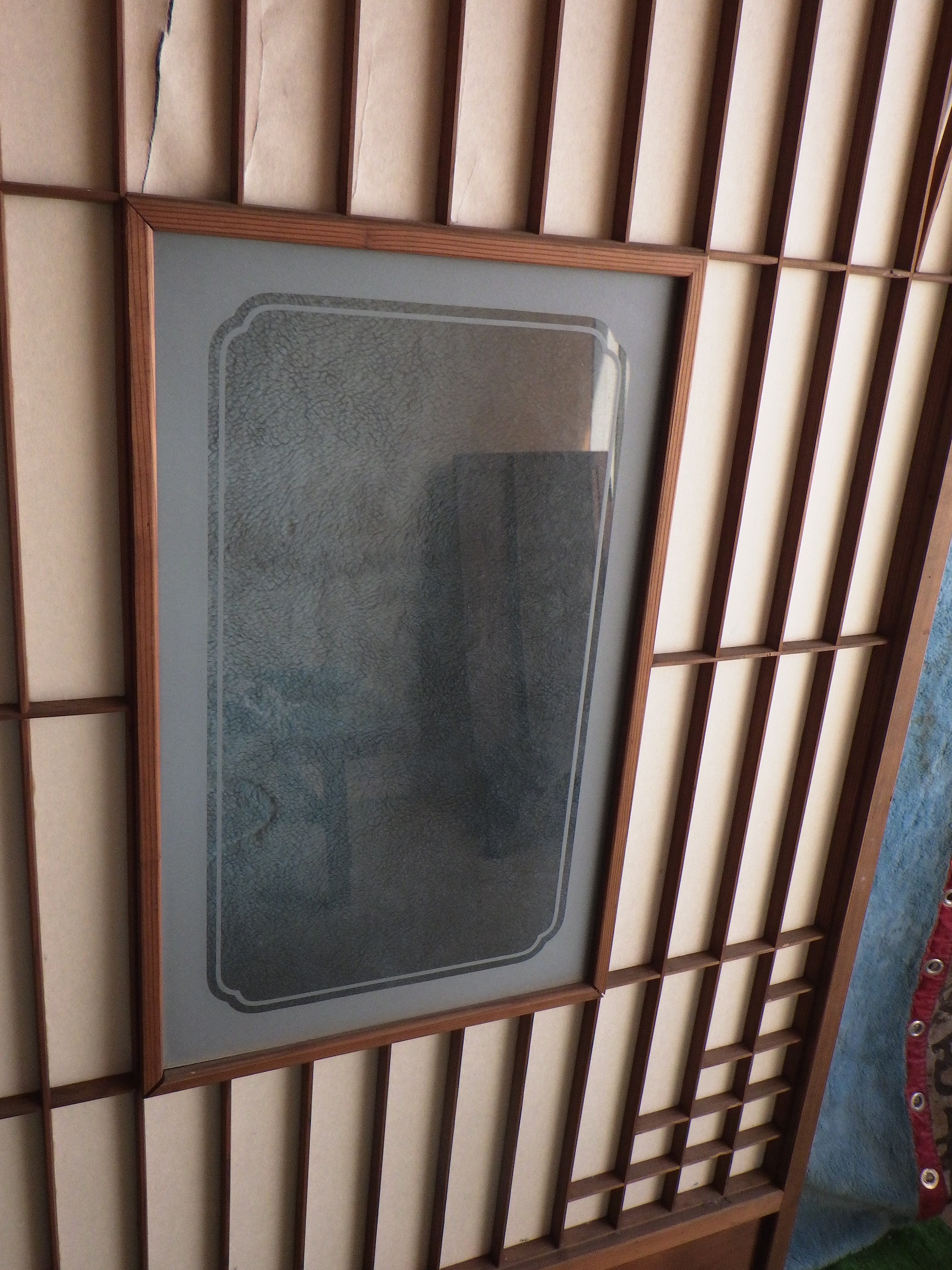 中ガラス付きの障子戸で、組子に控えめなデザインが施されています。