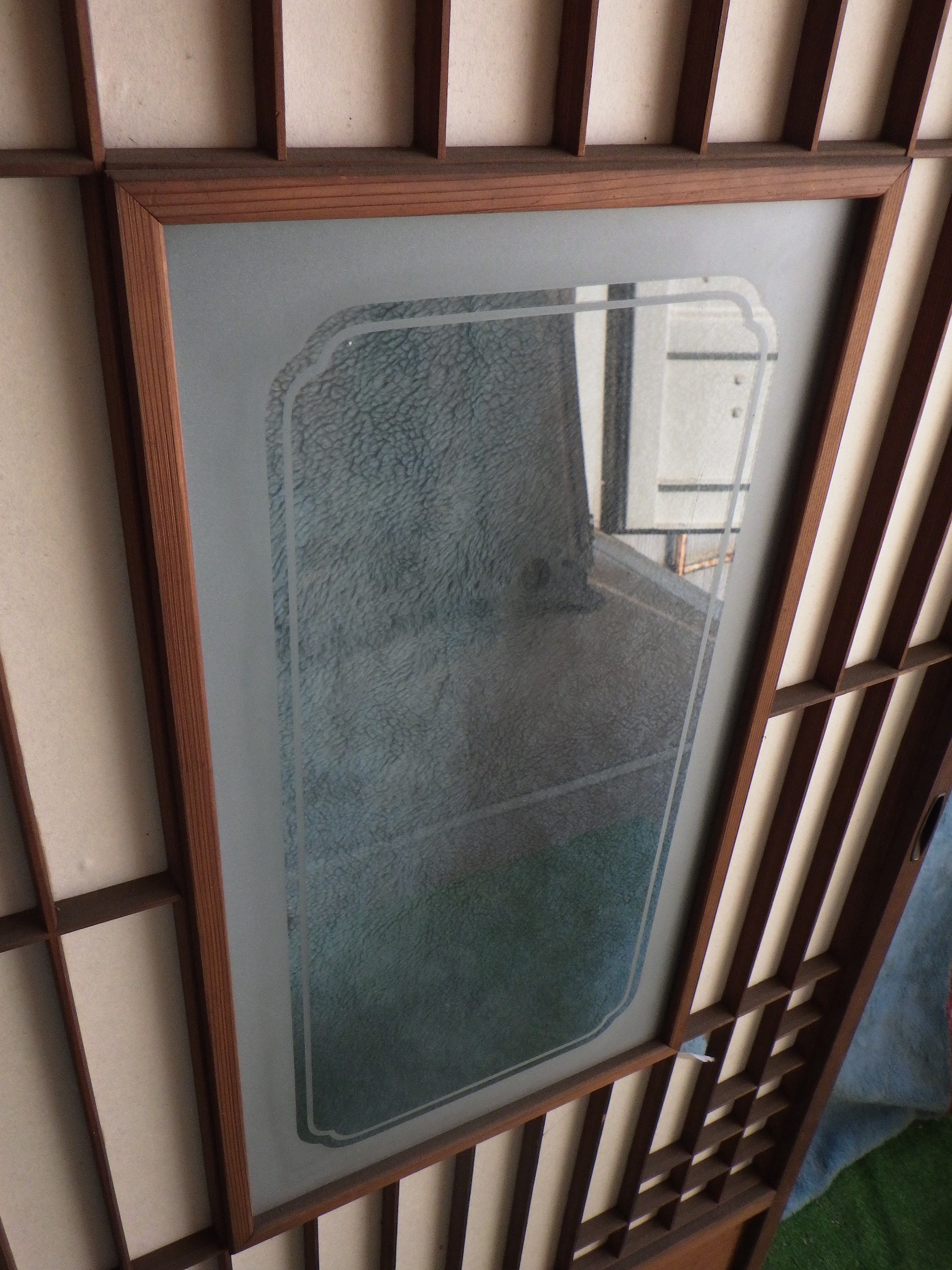 中ガラス付きの障子戸で、組子に控えめなデザインが施されています。