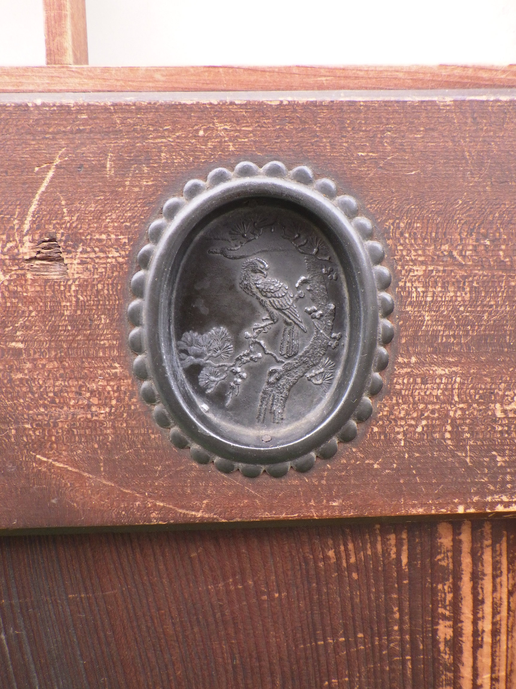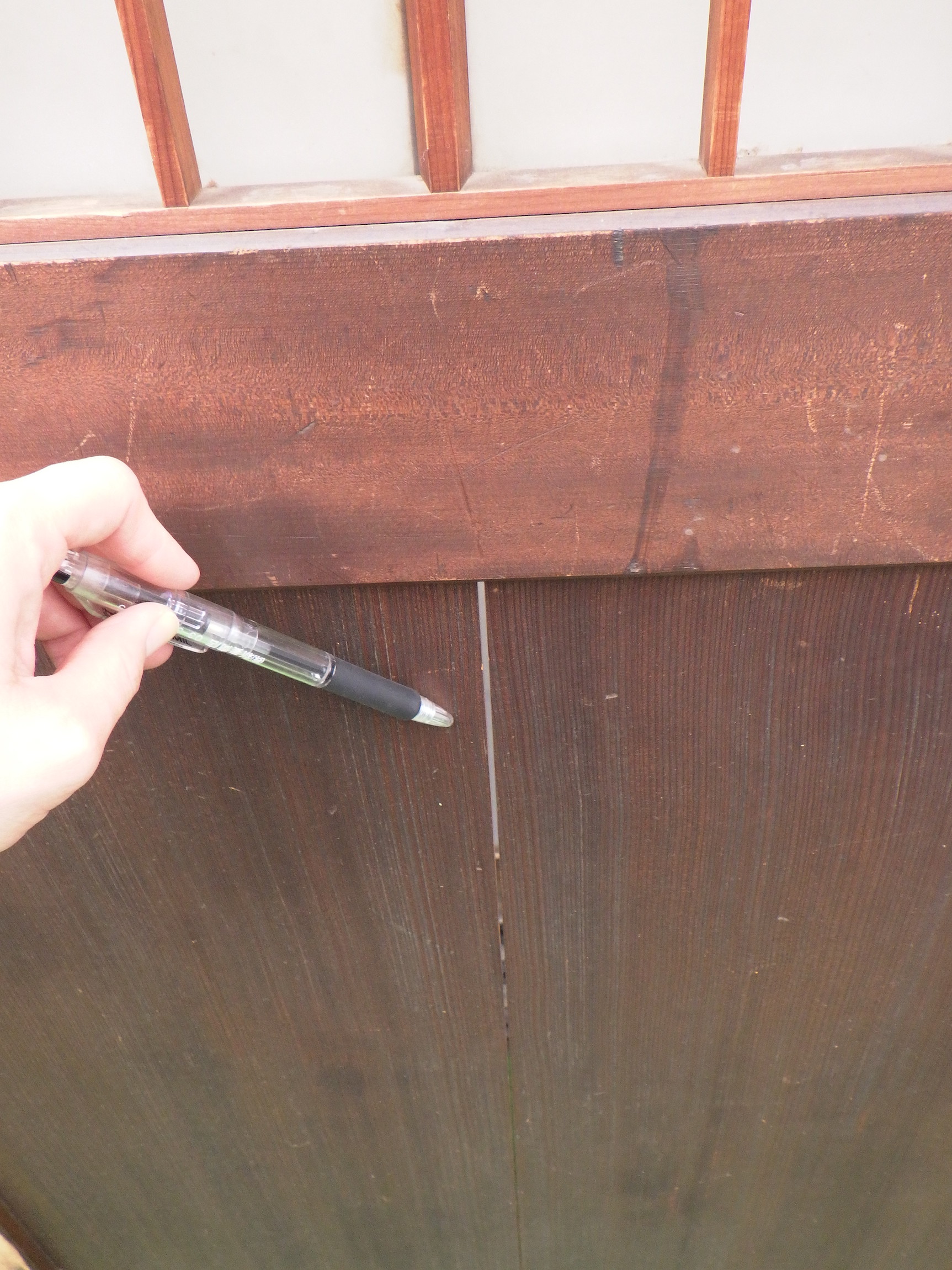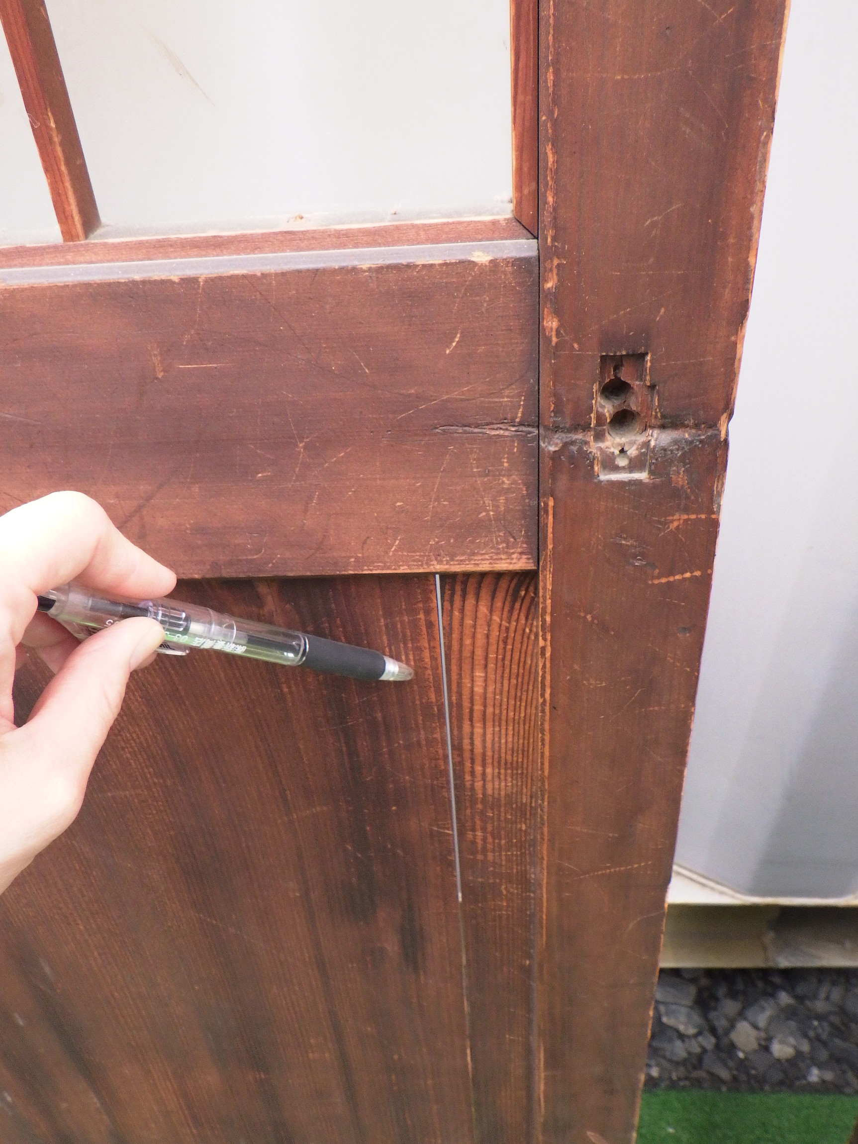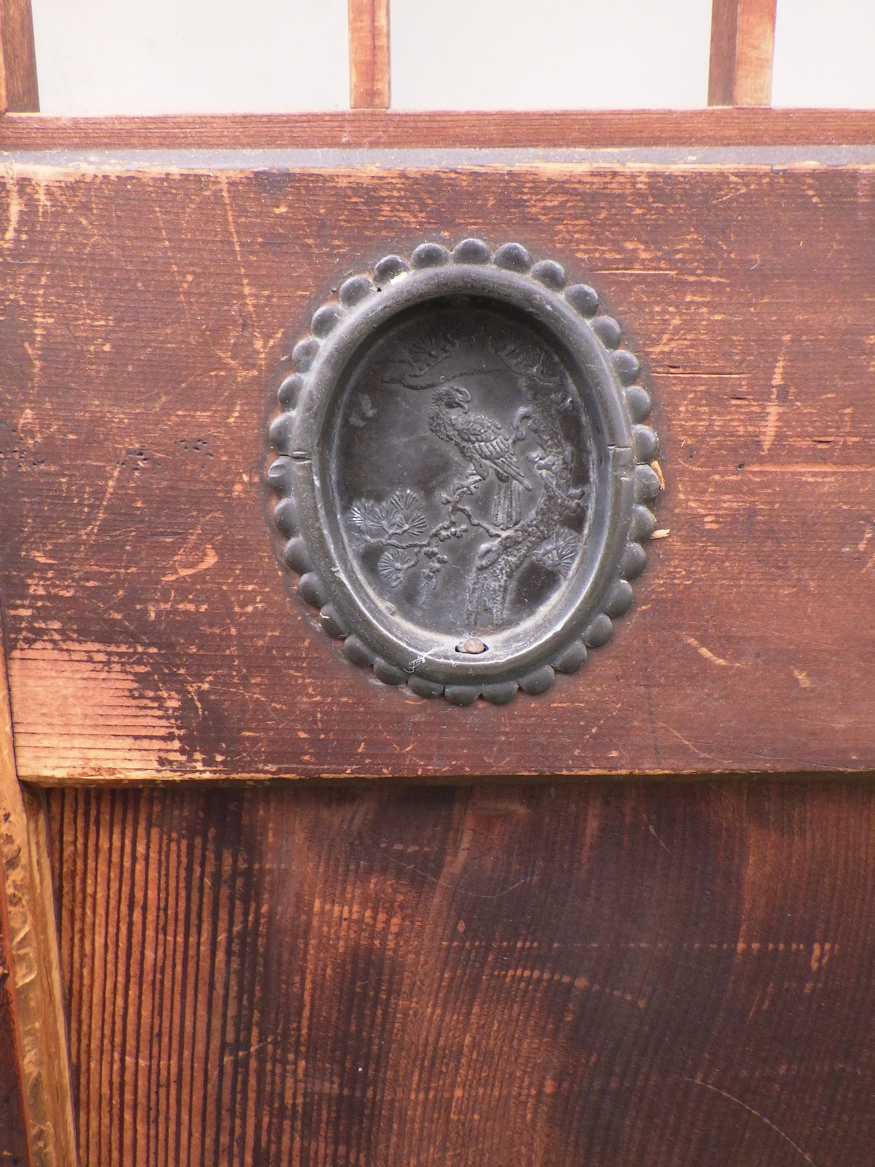 わけあり品。3枚全て鍵はついていません。東京江東区の民家で使われていた戸です。以下個々の詳細となります。 ②は他の3枚と引き手のデザインが異なります。また、片面の引き手は割れている箇所があります。 ③と④は、格子の一部に折れている箇所があります。また腰板に隙間が見られるため、接着が必要です。 もともとどんな建物で使われていたかブログに載せてみましたのでこちらをご覧ください。 ①は完売致しました。