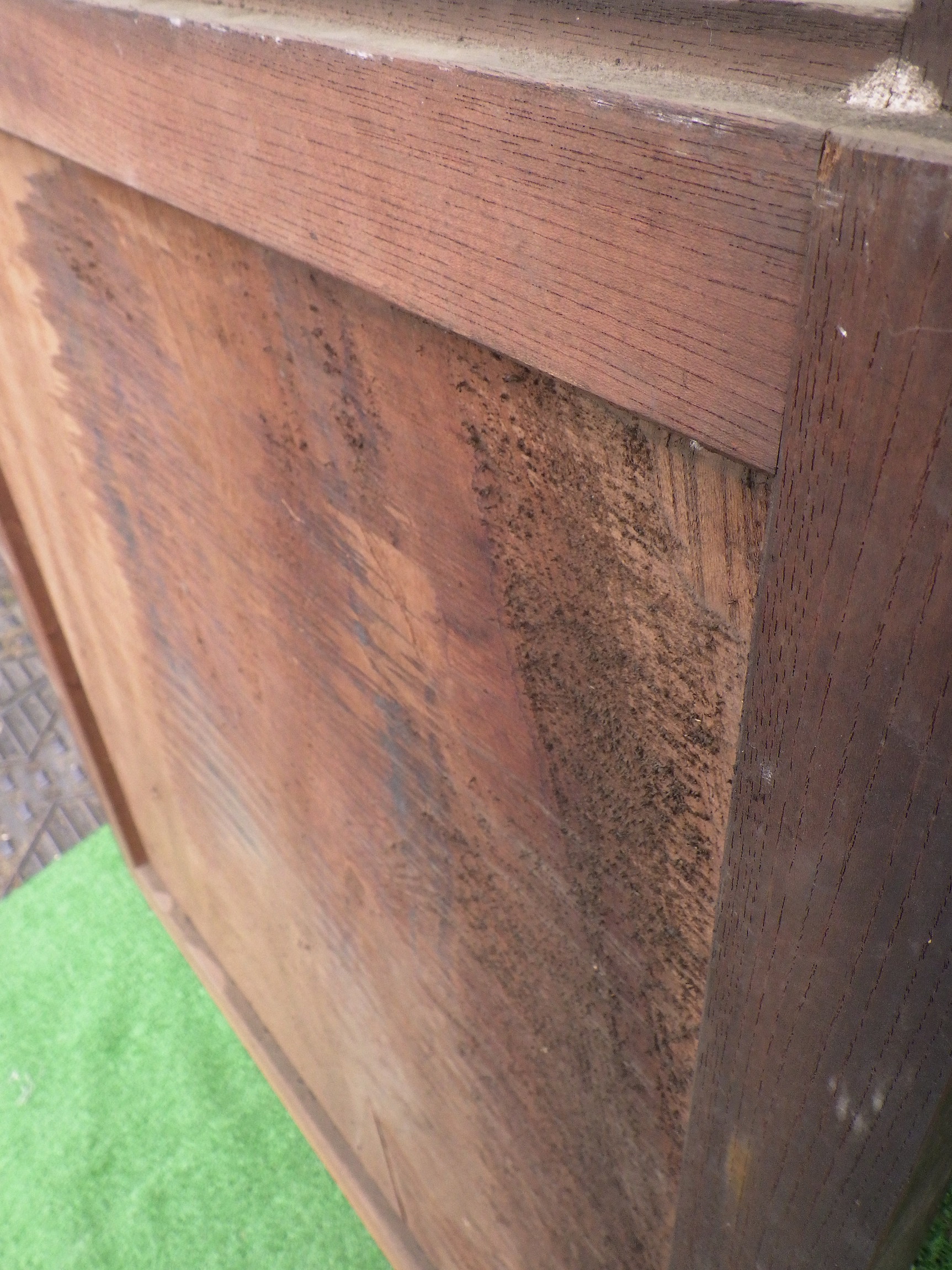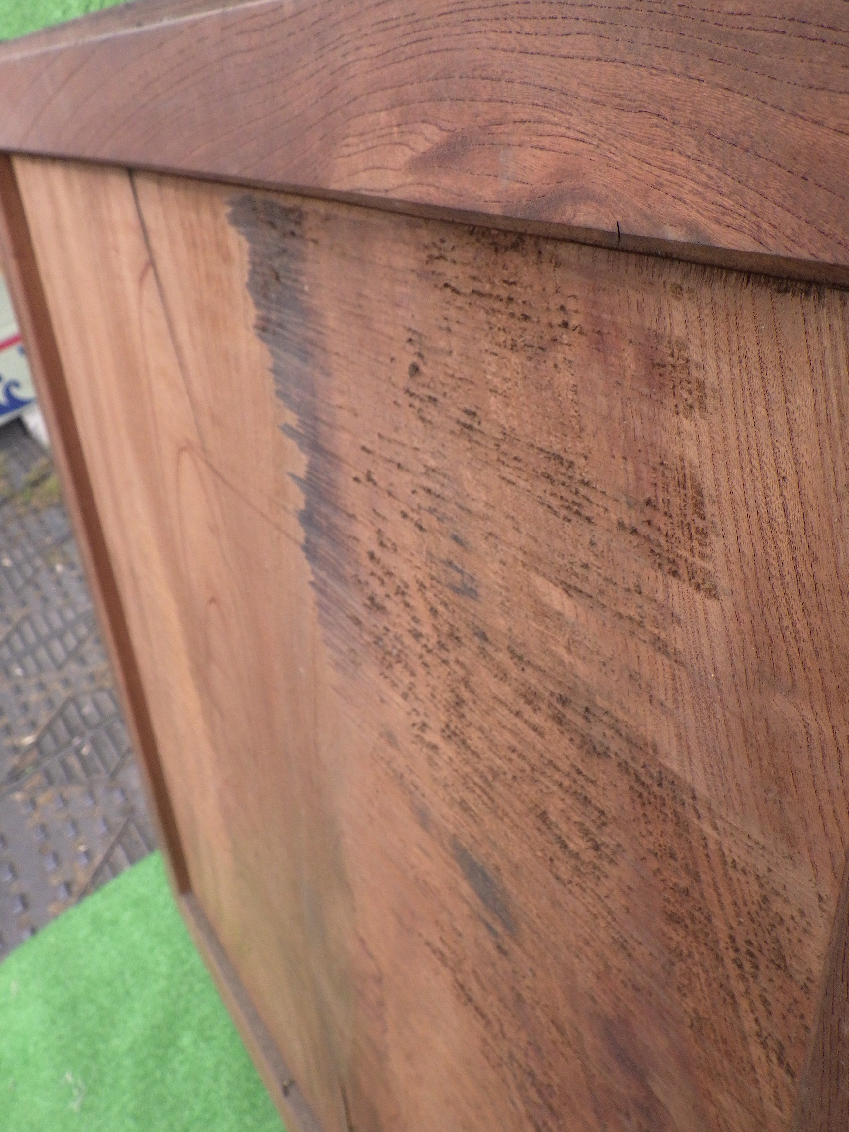 千葉県の落花生屋さんで使われていたものです。材はケヤキでどっしりとしていて立派です。板の反りや割れがあります。もともとどんな建物で使われていたかブログに載せてみましたのでこちらをご覧ください。