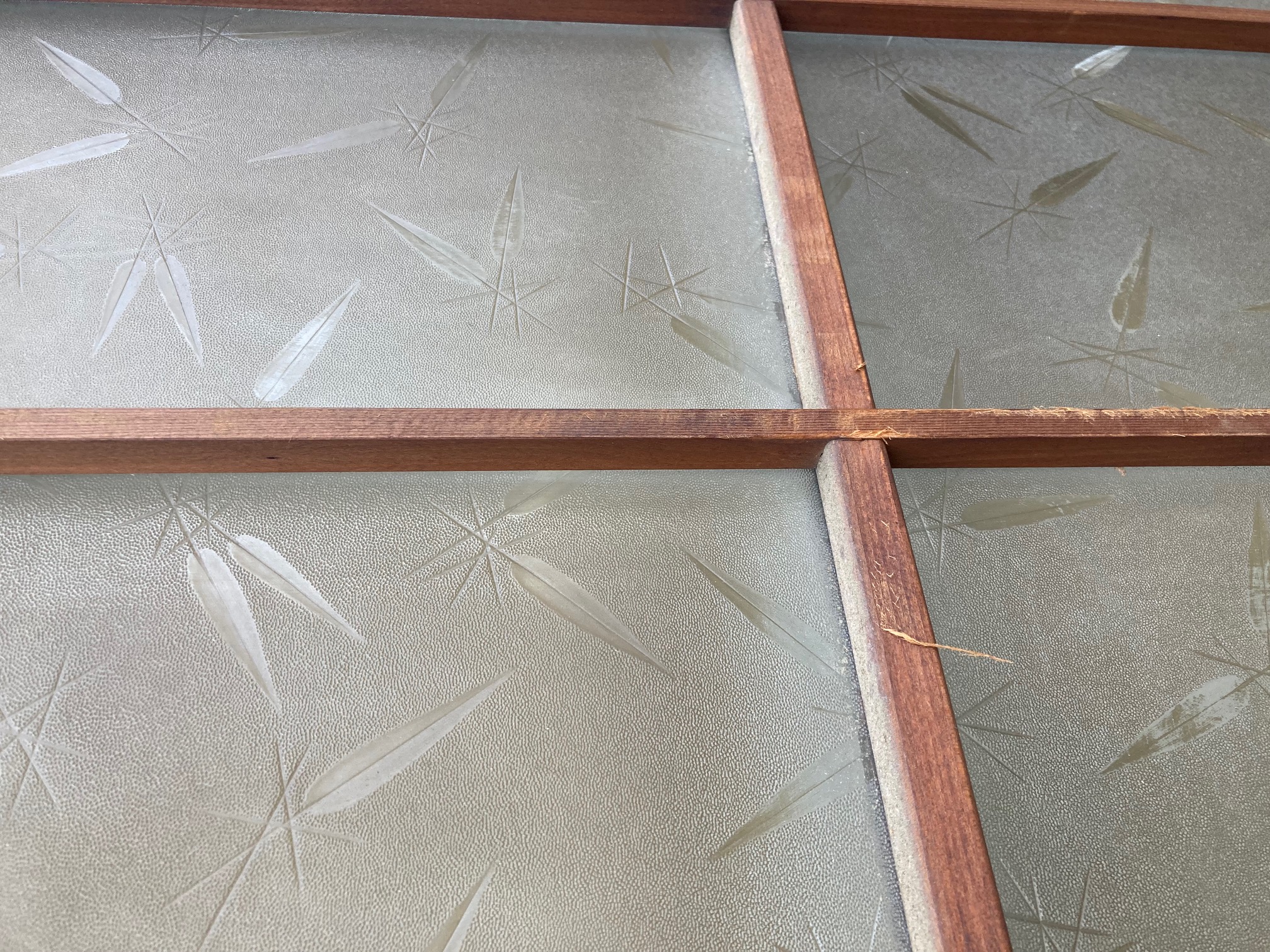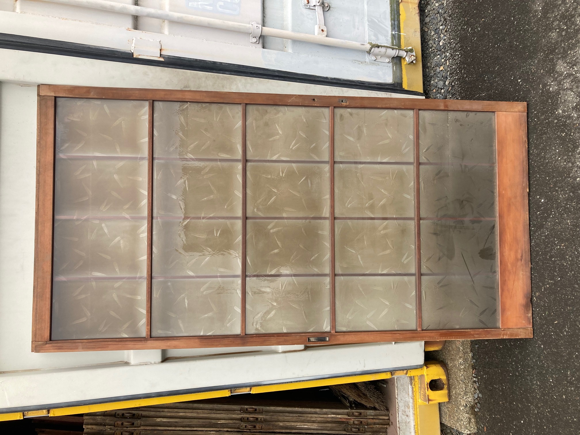 笹の葉のような模様のガラスが使われたガラス戸です。
